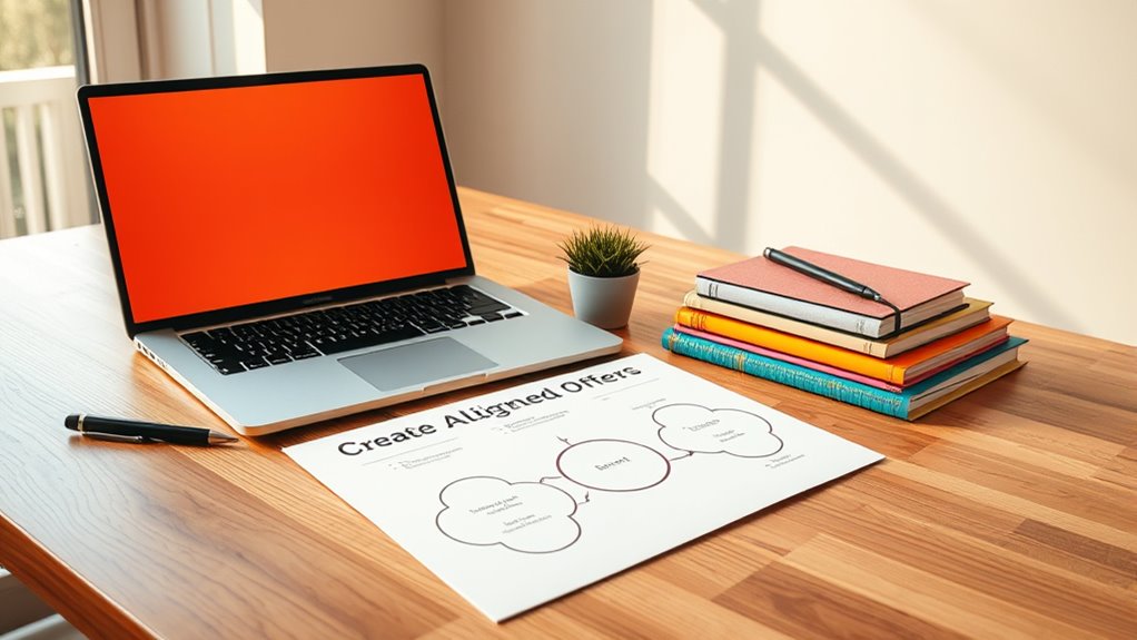 Creating aligned offers helps you attract ideal clients by meeting their needs and delivering real value. By conducting market research, you gain insights into your audience’s pain points and preferences, allowing you to tailor your products or services effectively. Incorporate powerful ingredients and develop smart pricing strategies to stand out and reinforce your brand. Regularly review and adapt your offers to stay relevant and build trust. Keep going to discover how to craft offers that truly resonate.