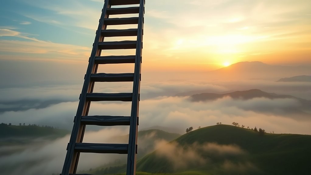By mastering belief bridging with ladder thoughts, you can transform your mindset faster than lightning striking a stormy sky. You’ll effortlessly connect your current beliefs to empowering ones, creating a chain of unstoppable momentum. Imagine your mind as a mighty bridge, spanning doubt and confidence with ease. Keep practicing, and you’ll soon see your thoughts soar higher than the tallest mountain, turning even the wildest dreams into your new reality. The power to change lies within you—ignite it now!
