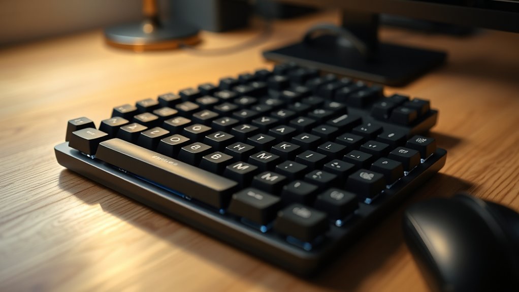 If you’re seeking a keyboard that gently balances space-saving design with precise performance, these options might just be your perfect companions. Each offers a unique touch of convenience and style, making your setup feel a bit more personal. Remember, the ideal choice should subtly enhance your workflow without overwhelming your space. Take your time exploring, and you’ll find a keyboard that quietly elevates your everyday experience. Your perfect fit is waiting to be discovered.