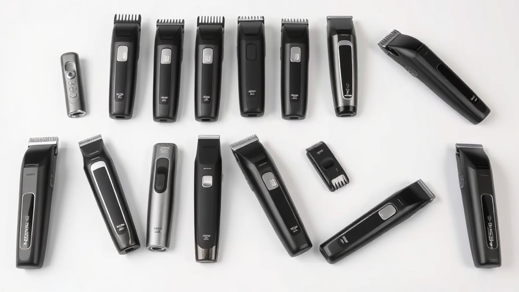 Choosing a beard trimmer with vacuum capture means paying close attention to attachments and length options, as they directly influence your grooming versatility. Multiple adjustable length settings, like 20 different trims, let you customize your style with precision. Removable or adjustable comb attachments make switching between beard styles easy, accommodating everything from stubble to full beards. Longer or varied length options are essential for managing different growth stages. Compatibility of attachments ensures a secure fit and quick changes during grooming. Some models feature quick-adjust dials or multiple combs, allowing seamless switching between lengths without extra tools. By considering these factors, you can select a trimmer that adapts to your style needs and makes grooming both efficient and comfortable.