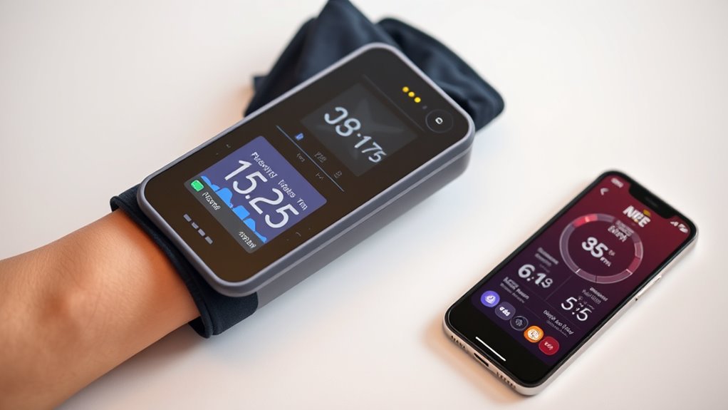 Imagine your health data as a treasure chest, and I assure you, Bluetooth blood pressure monitors lock it up tight. Most models use robust encryption and secure connections to keep your information private. They often comply with health privacy laws, ensuring your data isn’t shared without permission. I recommend checking each device’s privacy policy, but generally, these monitors prioritize security, giving you peace of mind while tracking your health.
