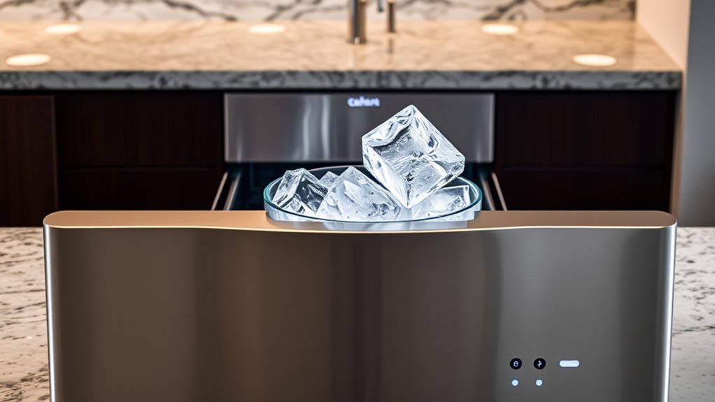 Choosing the right built-in ice maker is like picking the perfect jewel for your home bar—each one offers unique shine and sparkle. With so many options, you can find one that fits your space and needs, ensuring you always have a fresh supply of ice. Think of it as having a reliable ice-producing partner that keeps your drinks cool and your gatherings lively. Here’s to icy perfection in every glass!