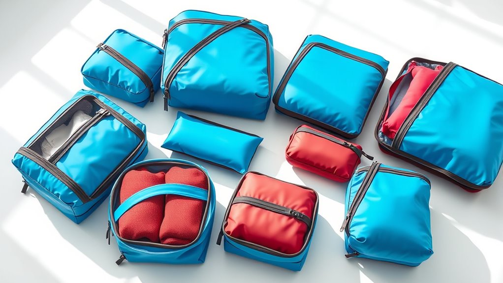 Imagine your suitcase as a treasure chest, bursting with possibilities—yes, eco-friendly options exist! I’ve found sets made from recycled materials, like RPET fabrics, which are gentle on the planet yet tough on clutter. These sustainable cubes help you organize while reducing waste. It’s like giving Mother Earth a little hug every time you pack. So, yes, choosing eco-conscious cubes is both smart and kind to our planet.