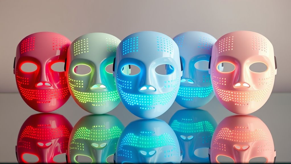 If you’re looking to elevate your skincare routine, I recommend exploring some of the top LED light-therapy masks available. These devices combine multiple wavelengths like red, blue, and near-infrared for targeting various skin concerns like acne, wrinkles, and uneven tone. They’re designed for comfort, portability, and easy use at home, often had features like adjustable modes and rechargeable batteries. Curious to discover which options suit your needs? Keep going, and you’ll find out more about these innovative skincare tools.