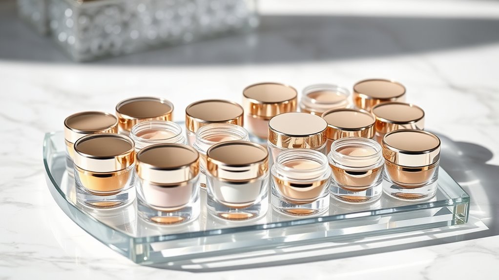 Choosing the right packaging and application methods can make a big difference in how effectively you use your luxury eye cream. An applicator like a roller or pump allows for precise, hygienic application, minimizing waste. Compact, travel-friendly containers make reapplication easy and hassle-free, especially when you’re on the go. Ergonomic designs and easy-open lids ensure effortless handling, reducing the chance of spills or mess. Clear instructions on how to apply—such as gentle tapping or rolling—help you use the product correctly for better absorption. Additionally, formulas that absorb quickly without requiring vigorous rubbing simplify your daily routine, making it more comfortable and efficient. Overall, thoughtful packaging and easy application enhance both the experience and results of your eye care routine.