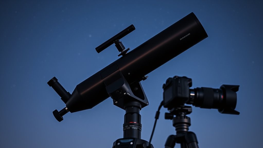 Yes, many mounts are compatible with both telescopes and cameras, especially those designed for versatility. I look for mounts with adjustable mounting plates and multiple attachment points, so I can easily switch between my telescope and camera gear. Checking the mount’s specifications for weight capacity and compatible accessories helps guarantee I get a setup that works smoothly for both astrophotography and visual observing.