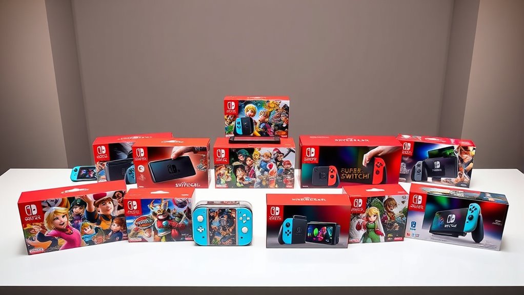 When choosing a Nintendo Switch 2 bundle, I consider factors like the variety of included items, the overall price, and whether it offers good value. I also look at the types of accessories and games included to match my interests and guarantee compatibility with my existing setup. By paying attention to these points, I can find a bundle that fits my needs and maximizes my gaming experience.