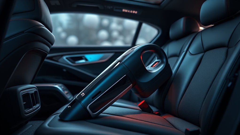 When choosing a premium car vacuum, portability and weight are crucial factors that can make or break your cleaning experience. A lightweight vacuum improves maneuverability and minimizes fatigue during extended cleaning sessions, so you can clean comfortably without feeling weighed down. Compact designs with ergonomic handles make carrying and storing the vacuum easier, whether in your vehicle or closet. Small models are perfect for reaching tight spots, like under seats or in crevices. The overall weight matters too; devices under 2 pounds are ideal for quick, effortless cleanups. Increased portability means you can tackle cleaning tasks on the go without lugging around bulky, heavy equipment. Ultimately, choosing a lightweight, portable vacuum ensures more efficient, comfortable, and flexible cleaning every time.