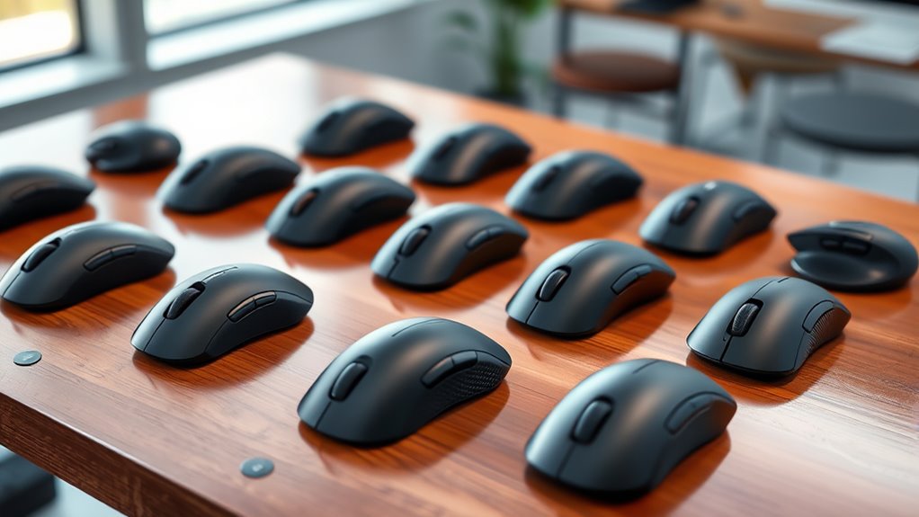 Premium ergonomic mice stand out with features like customizable buttons, advanced grip designs, and high-precision sensors that standard mice often lack. I notice they also offer better wrist support, reducing strain during long hours. These mice typically have adjustable DPI settings, allowing for precise control, and high-quality materials that boost durability. Overall, these features work together to enhance comfort and accuracy, making them ideal for demanding tasks.