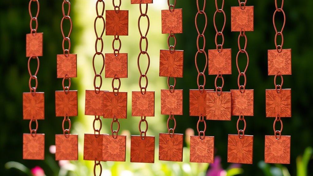 Choosing the right copper square rain chain truly combines style and durability, and with over 70% of homeowners prioritizing aesthetic appeal alongside longevity, it’s clear these options are a smart investment. Copper’s natural patina not only enhances your home’s charm but also protects against corrosion. Whether you prefer hammered or smooth designs, these rain chains offer both function and elegance, making your outdoor space both beautiful and practical. Trust me, upgrading with one of these will elevate your curb appeal effortlessly.