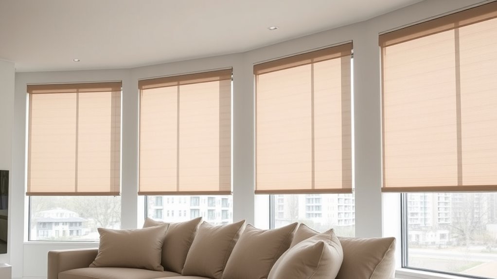 The noise level of motorized blinds significantly impacts their suitability for different rooms, especially bedrooms and media spaces where quiet operation is essential. Typically, these motors produce between 30 and 40 decibels—roughly the sound of a soft fan or conversation. Quieter operation is crucial in spaces where disturbance can interfere with sleep or relaxation. Higher-quality models often operate below 35 decibels, making them more unobtrusive. Some smart blinds incorporate noise-reduction features or dampening materials to minimize sound during movement. Additionally, the speed and smoothness of operation influence perceived noise; slower, controlled motions tend to be less disruptive. Considering these factors helps ensure your smart blinds function quietly and seamlessly, enhancing comfort without sacrificing automation benefits.