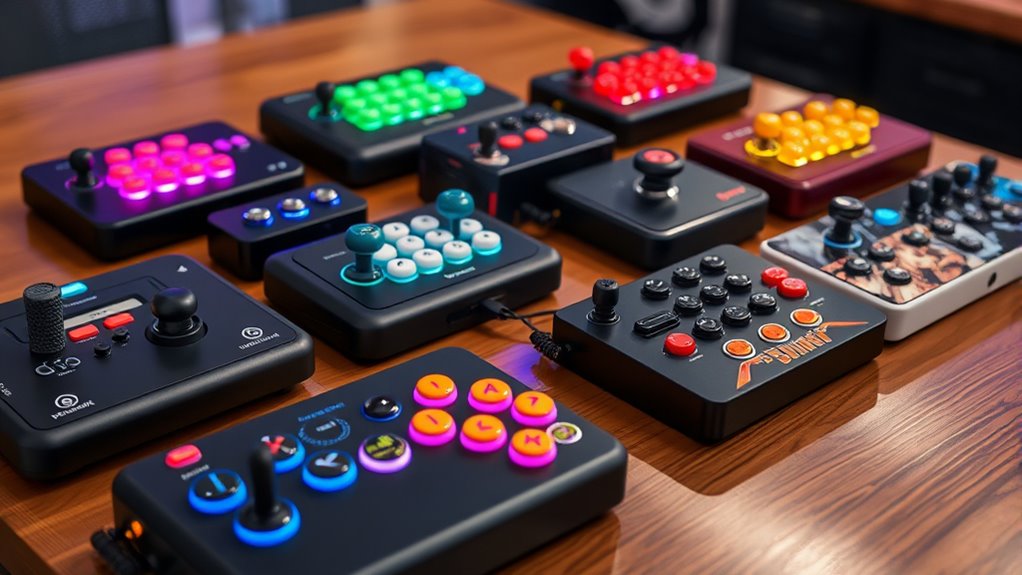 Tournament-grade fight sticks are built for precision and durability, setting them apart from regular controllers. I notice they have high-quality, responsive arcade buttons and a smooth joystick for quick, accurate inputs. The construction is solid, often with customizable parts, allowing me to fine-tune my setup. These sticks also feature a low latency response, which is vital for competitive play. Overall, they give me a more authentic, reliable fighting game experience.