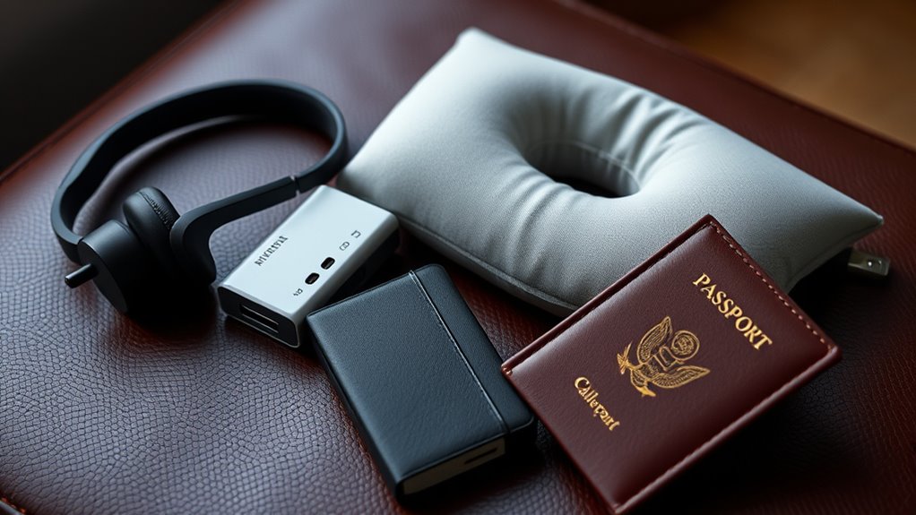 For long-haul flights, I recommend lightweight essentials like noise-canceling headphones, a cozy travel pillow, and a good eye mask. I also find compact skincare and a refillable water bottle handy to stay refreshed. A portable charger keeps my devices powered, and a lightweight blanket adds comfort. These gifts help me arrive feeling rested and ready, making the journey much more enjoyable without adding extra weight.