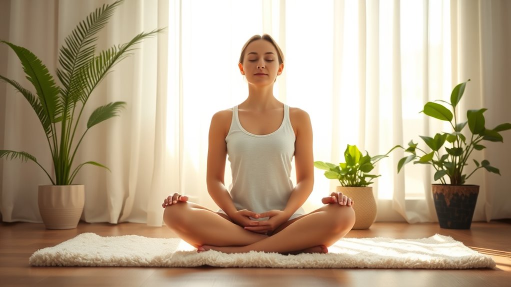 Think of your breathwork space as your sanctuary—your personal island of calm. You don’t need much; simply find a quiet, comfortable spot free from distractions. For breathwork equipment, consider a yoga mat or cushion to sit on, and maybe a blanket for warmth. Keep your space tidy and inviting, ensuring it’s suitable for relaxation and focus. With just these essentials, you’re ready to breathe deeply and find tranquility.