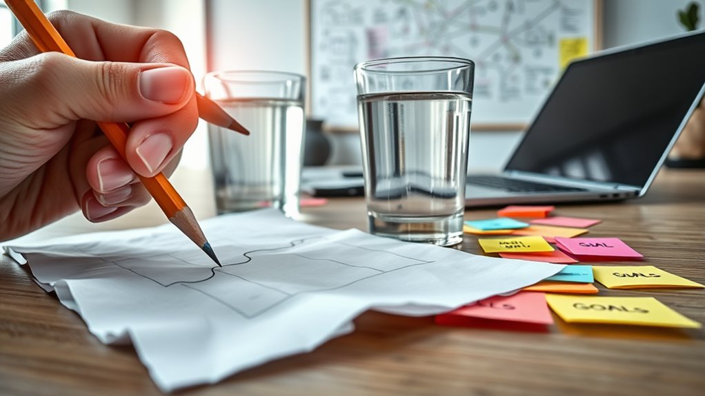 You might think the answer’s simple, but the tools are powerful. First, apply SMART criteria—make your objectives Specific, Measurable, Achievable, Relevant, and Time-bound. Then, use goal visualization to picture success clearly. These tools cut through ambiguity, helping you transform fuzzy aims into sharp, actionable steps. With clarity, you’ll find your path forward—no more guesswork, just focused progress.