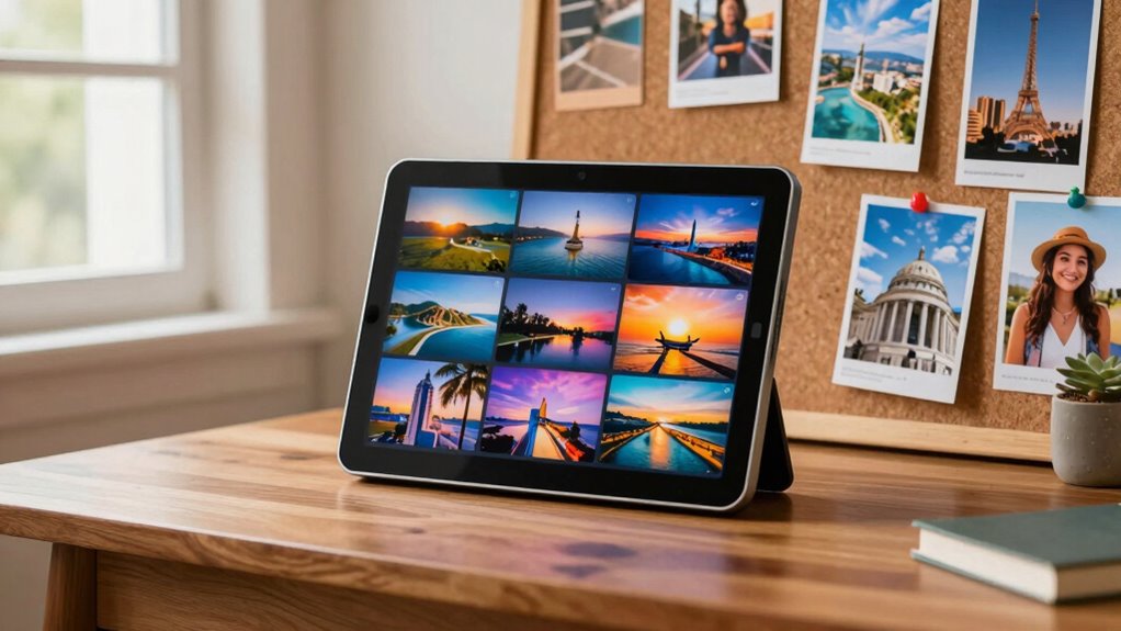 Embracing digital photo frames for your vision board is a game-changer—you get to keep your goals front and center, always within sight. With dynamic displays, you can update your dreams as often as you like, making your aspirations feel more real and attainable. Don’t let your dreams gather dust; instead, let this tech-savvy tool keep your motivation alive. After all, if you want something done, you’ve got to keep it in the forefront of your mind.