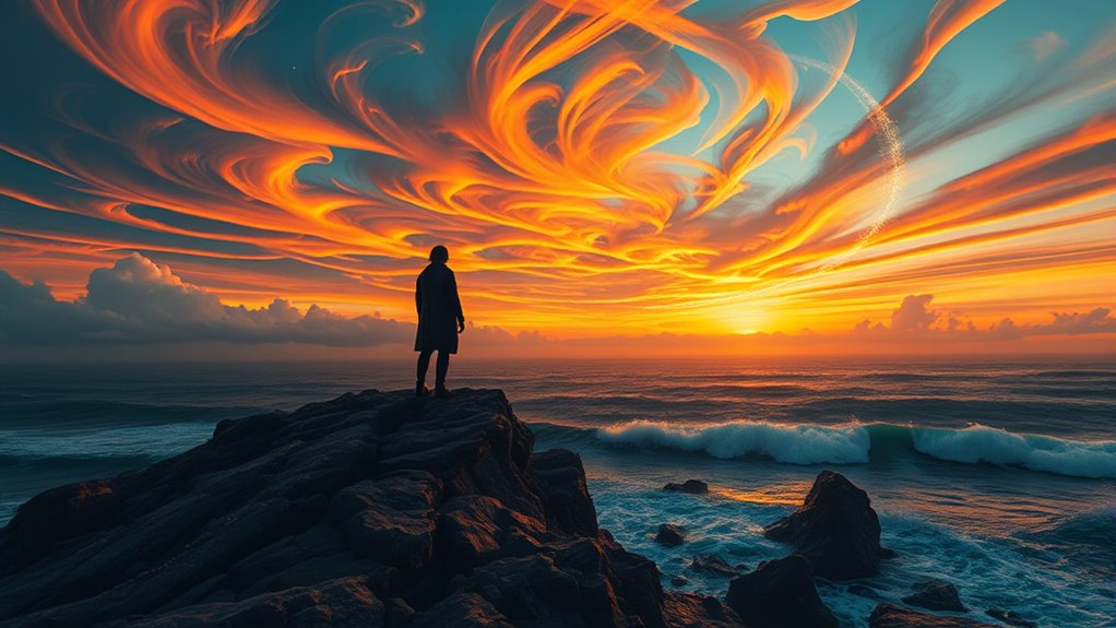 Cultural beliefs shape how you see free will and fate through cultural narratives and belief systems. If your culture emphasizes personal choice, you’ll likely view your actions as within your control. Conversely, if fate is prominent, you might believe external forces determine your life. These narratives influence your decisions and how you interpret life’s events, guiding your understanding of whether you shape your destiny or are governed by unseen forces.