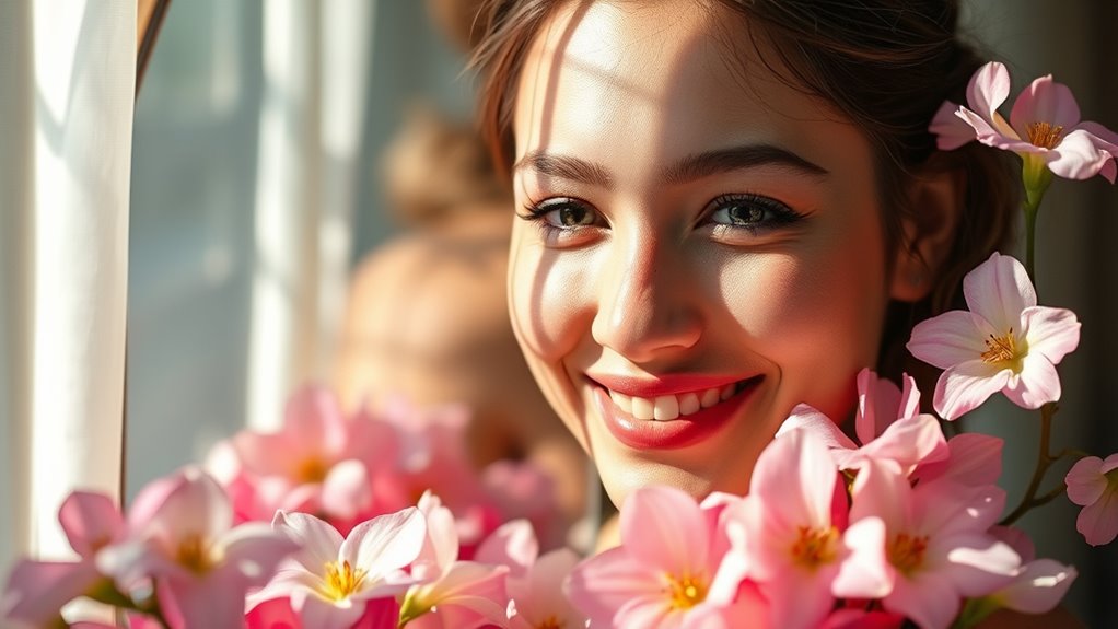Additionally, understanding the importance of contrast ratio in visual imagery can remind you how crucial clarity and depth are for a true sense of well-being, much like how contrast ratios impact image quality. The key is to be genuine and specific with your affirmations. When you speak to yourself with honesty and kindness, you foster a more authentic inner dialogue. This authenticity makes your affirmations more effective because they resonate deeply within you. Over time, you’ll notice a natural increase in your inner confidence, alongside a fortified emotional resilience that helps you stay grounded, even in turbulent moments. Fundamentally, these affirmations become your mental armor—empowering you to accept yourself fully, celebrate your uniqueness, and face life’s uncertainties with courage and self-compassion.